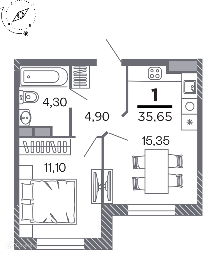 Планировка 1 комн. в Кипарис (Дом на Быстрецкой)
