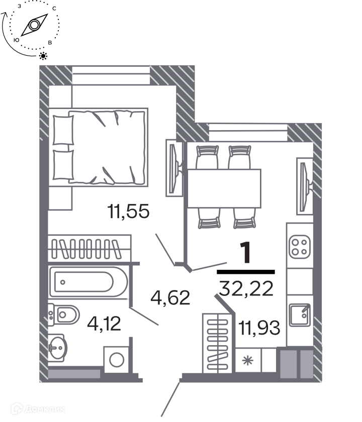 Планировка 1 комн. в Кипарис (Дом на Быстрецкой)