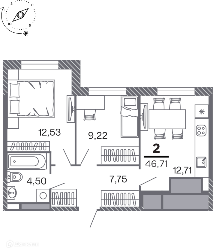 В продаже 2-комнатная квартира в новом жилом комплексе "Кипарис (Дом на Быстрецкой)" 🏢. Квартира расположена на 22-м этаже 25-этажного дома. Прекрасный выбор для семьи.