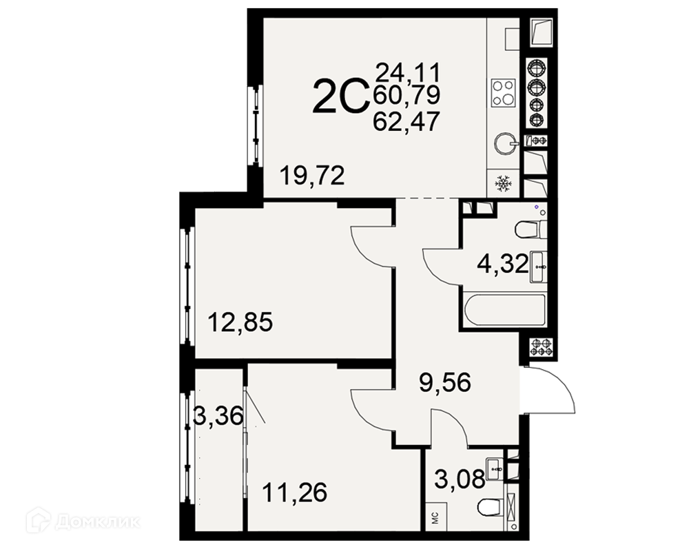 Планировка 1 комн. в ЖК «Медиана»