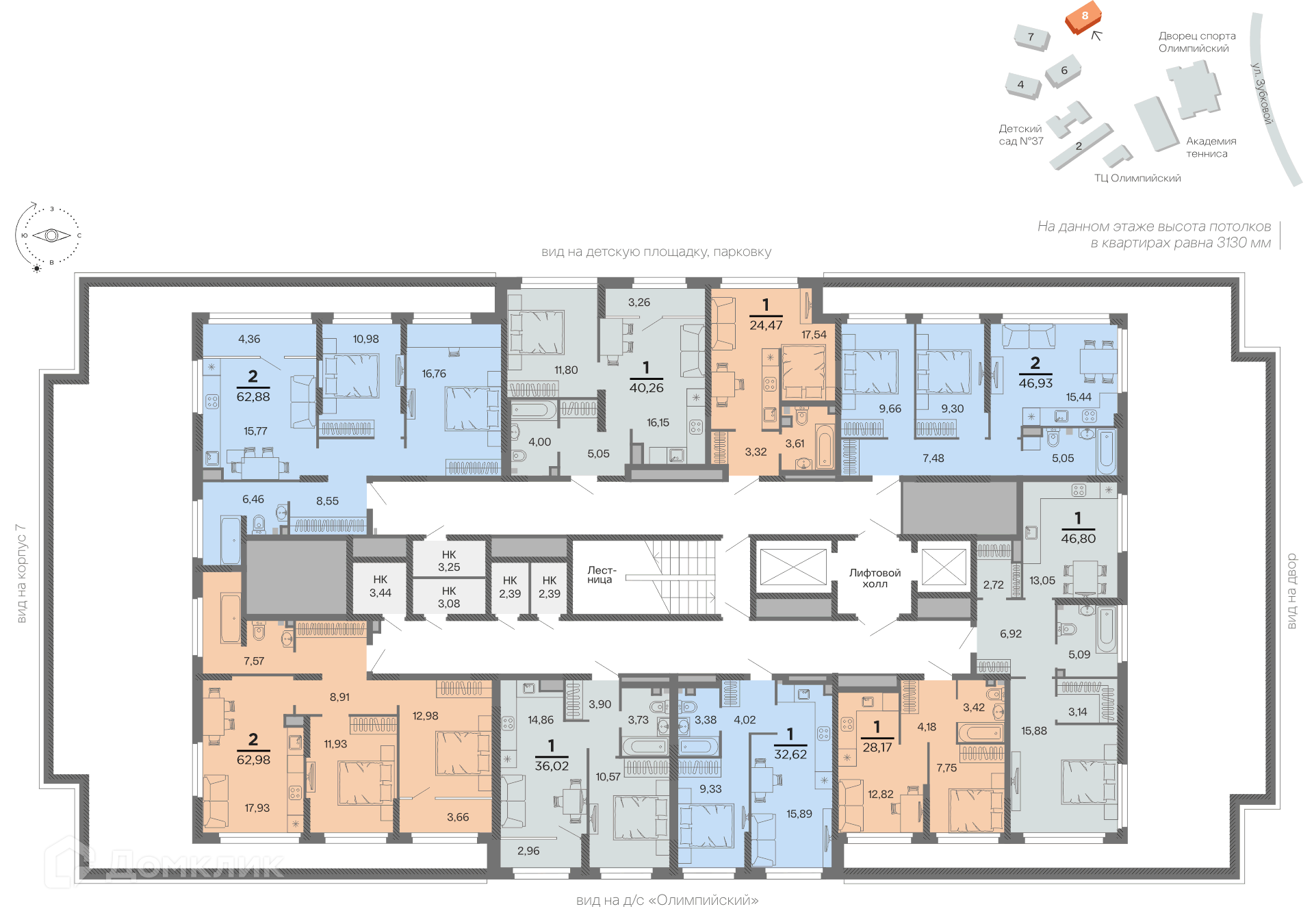 Самый масштабный проект «Северной Компании» занимает территорию 50 га, включая побережье двух озер. Жилой комплекс «Северный» расположен в районе Ледового дворца рядом с Академией тенниса, и представляет собой городской квартал. Инновационный подход чувствуется в каждой детали: от материалов, которые используются при строительстве, до внутренней отделки подъездов и самих квартир. БЕЗОПАСНАЯ ДВОРОВАЯ ТЕРРИТОРИЯ Двор закрыт от машин и предназначен для жителей. Устроен как зелёный парк с разнообразными функциями — для детей, спорта и отдыха. Обустроен большой спортивный корт для игры в баскетбол с мягким покрытием. Рядом расположены уличные тренажёры. На детской площадке, оборудованной игровыми модулями, есть качели, лабиринты, пружинки, песочница. Между зонами активности и в центре двора уложен газон. Безопасность во дворе контролируют камеры видеонаблюдения и охрана. ВХОДНЫЕ ГРУППЫ И ВНУТРЕННЯЯ ОТДЕЛКА В Жилом комплексе — прозрачные входные группы. Жители видят, что происходит внутри подъезда и снаружи во дворе. Входы сделаны без ступеней и расположены на уровне земли. Предусмотрены сквозные подъезды, которые связывают улицу и двор. Домофон на входе в подъезд установлен в тёплом тамбуре. В каждом подъезде на первых этажах есть просторные колясочные с доступом только для жителей. В холле и на этажах сделана навигация и подсветка. Лифтовые холлы в подъездах просторные. В новых домах они обустроены с местами ожидания курьера или такси, встречи гостей. В ЖК используются только большие лифтовые кабины с высокой грузоподъёмностью: удобно перевозить крупногабаритные вещи и просто стоять рядом с соседями, соблюдая социальную дистанцию. Сформирована безбарьерная среда.