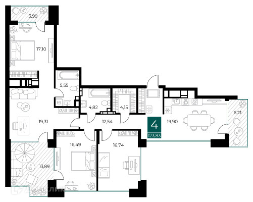 В продаже 4-комнатная квартира в современном жилом комплексе "ЖК Арт-кварталы" 🏢. Квартира расположена на 7-м этаже 14-этажного дома. Отличный вариант для семьи.