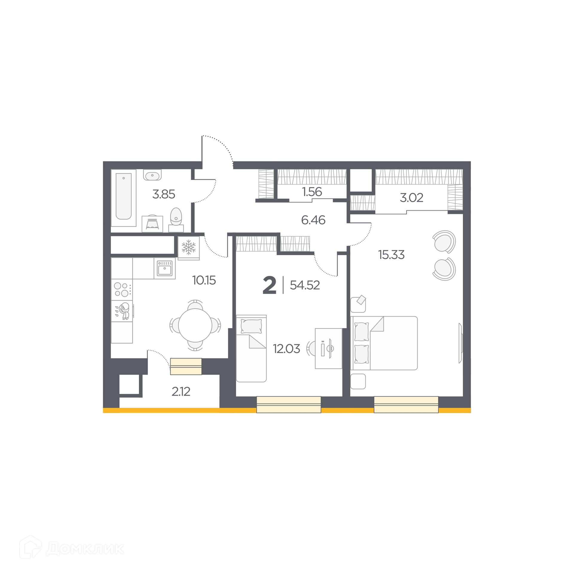 Планировка 1 комн. в Новые Горизонты