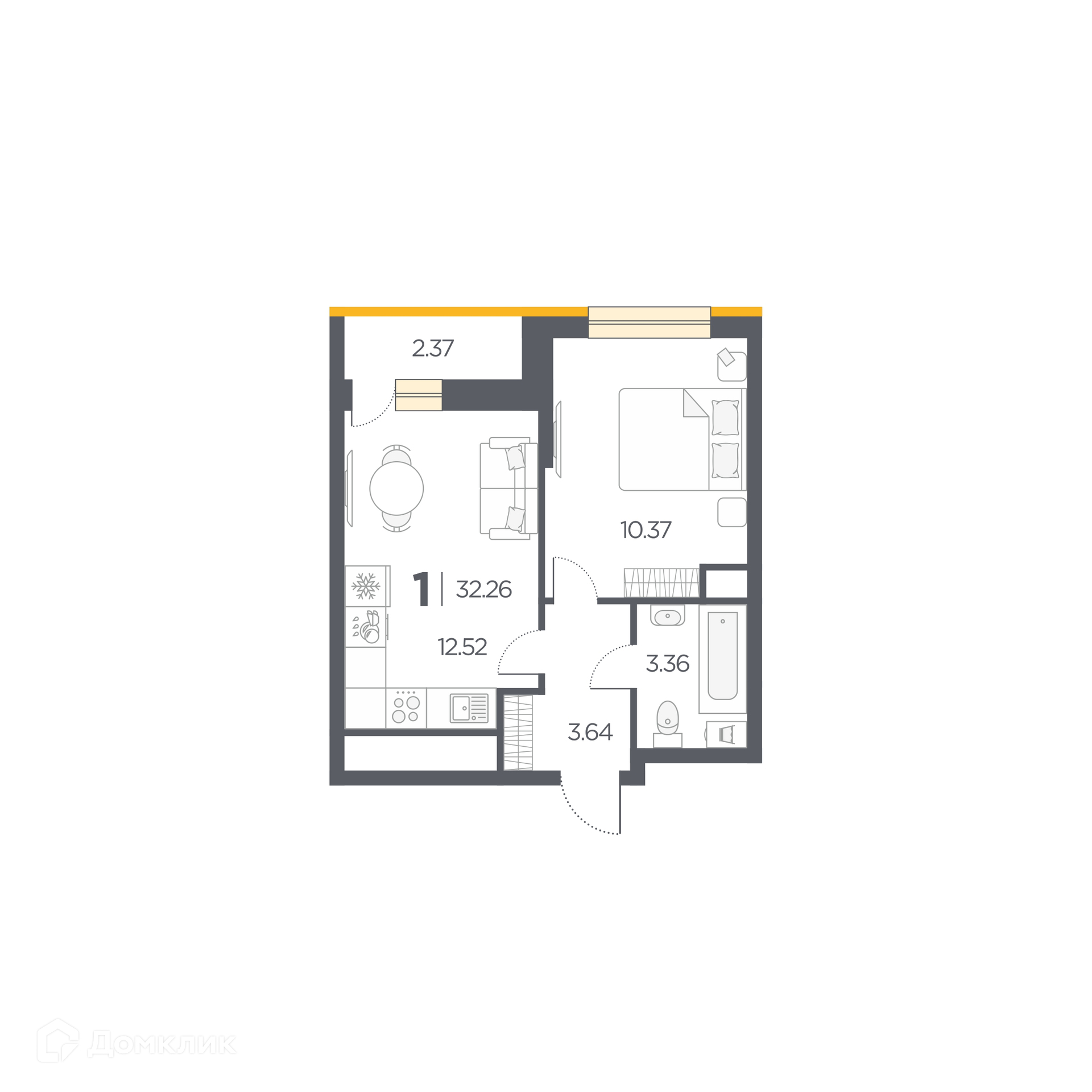 Планировка 1 комн. в Новые Горизонты