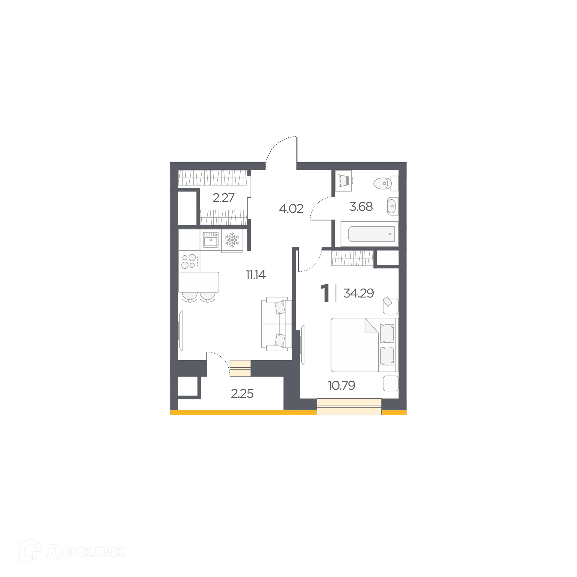 Планировка 1 комн. в Новые Горизонты