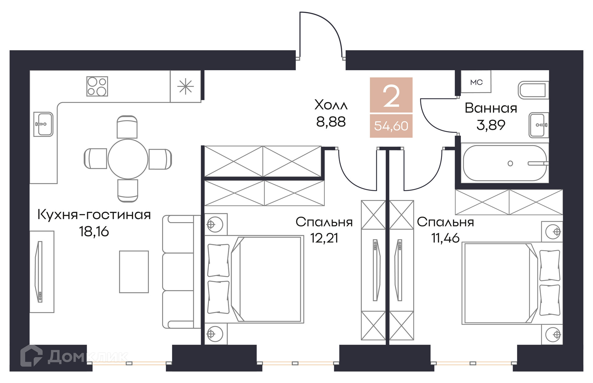 - ✅ Кухня: 18.16 м² — место для кулинарных шедевров.