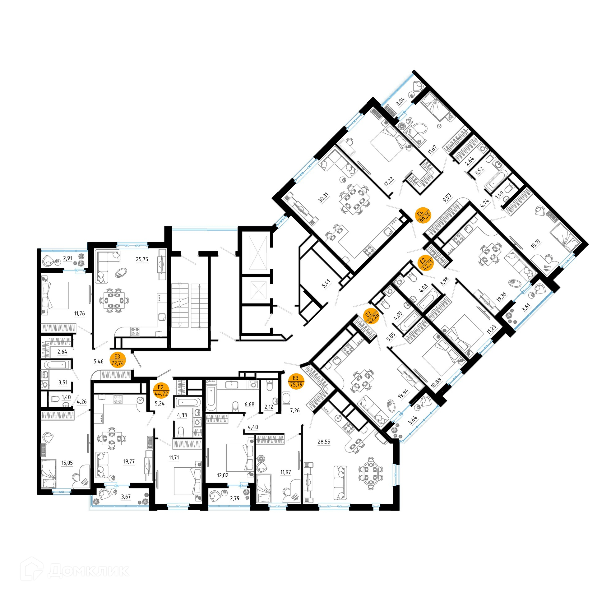 Площади квартир