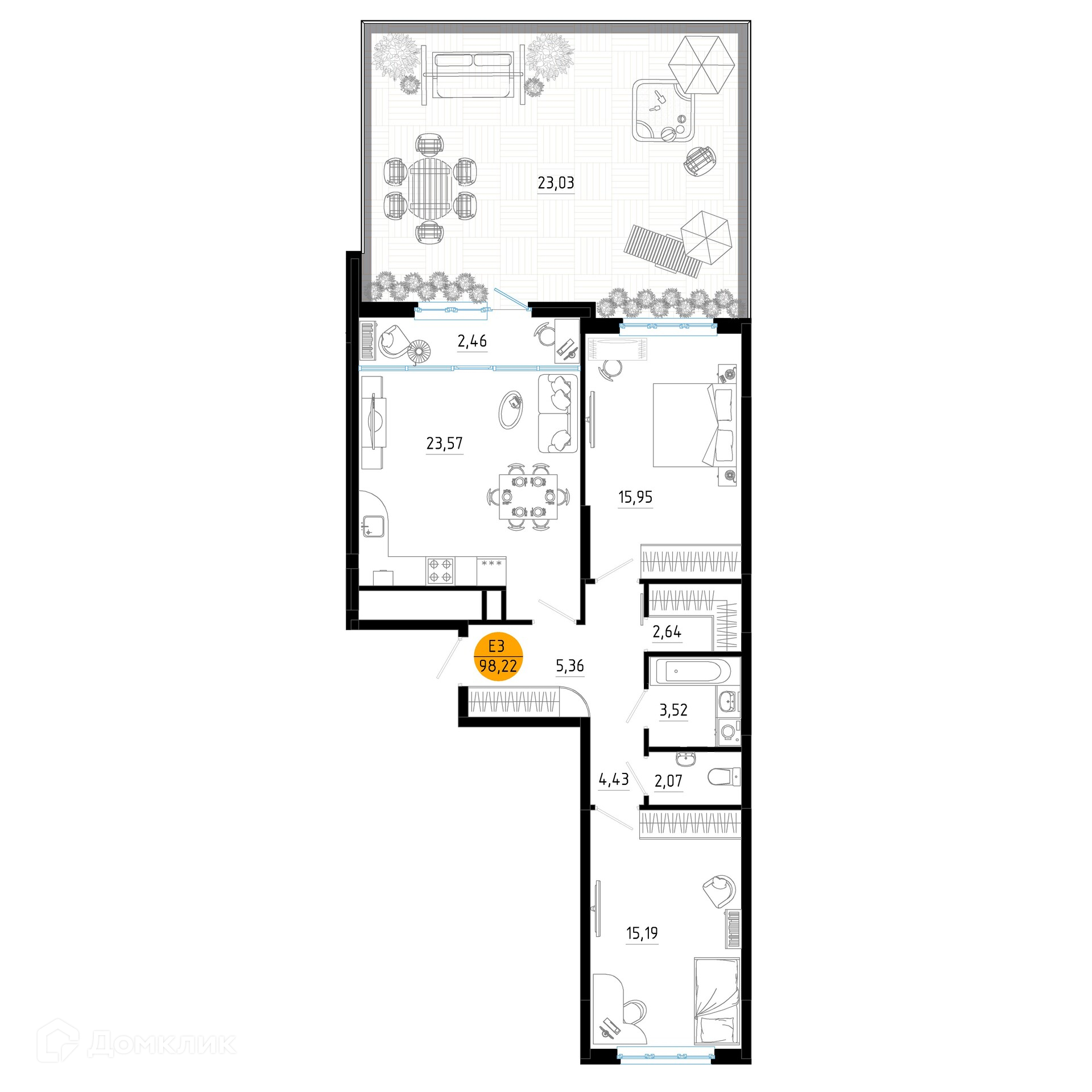 Планировка 2 комн. в ЖК Смарт Квартал ЦЕНТРАЛЬНЫЙ