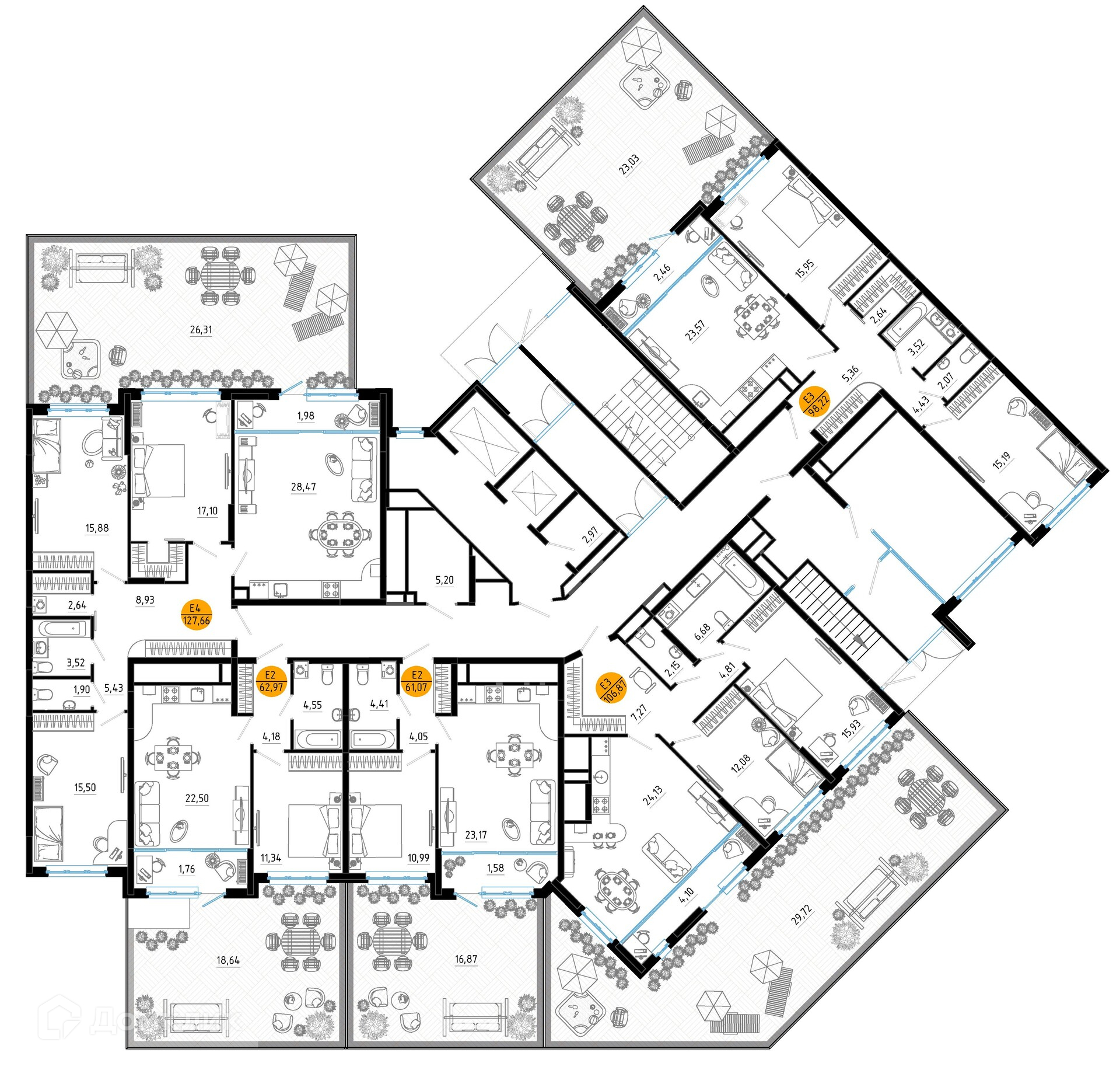 Площади квартир