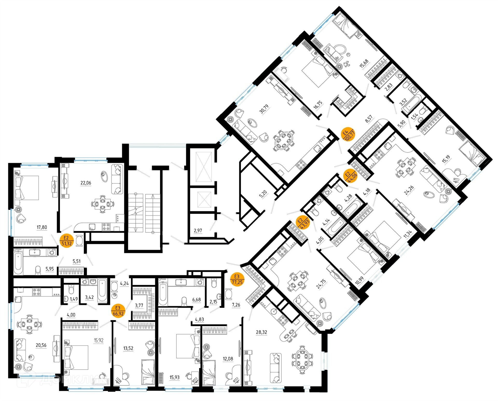 Площади квартир