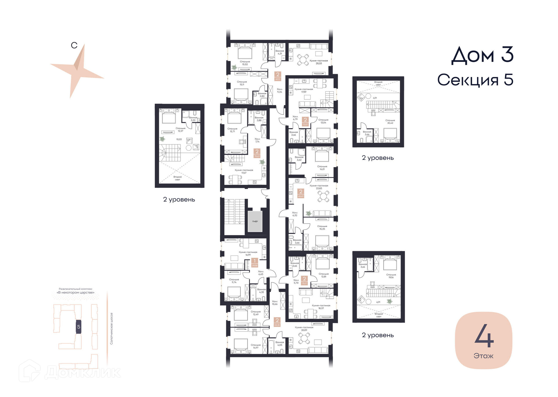 Квартира расположена на 4-м этаже 6-этажного дома.