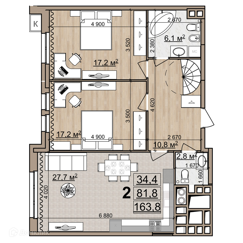 - ✅ Кухня: 27.7 м² — место для кулинарных шедевров.