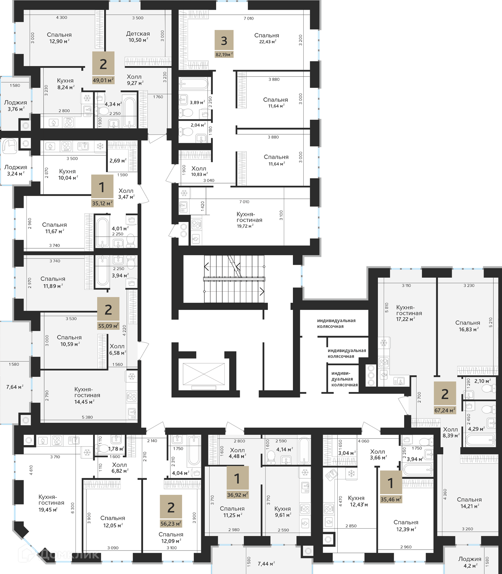Площади квартир