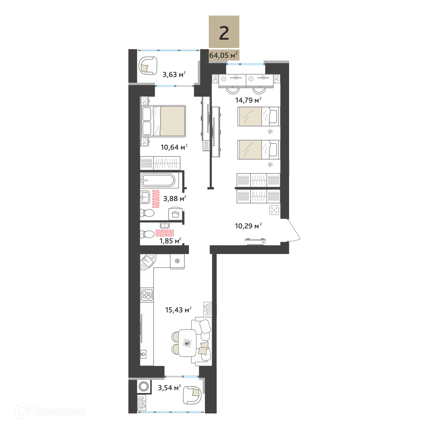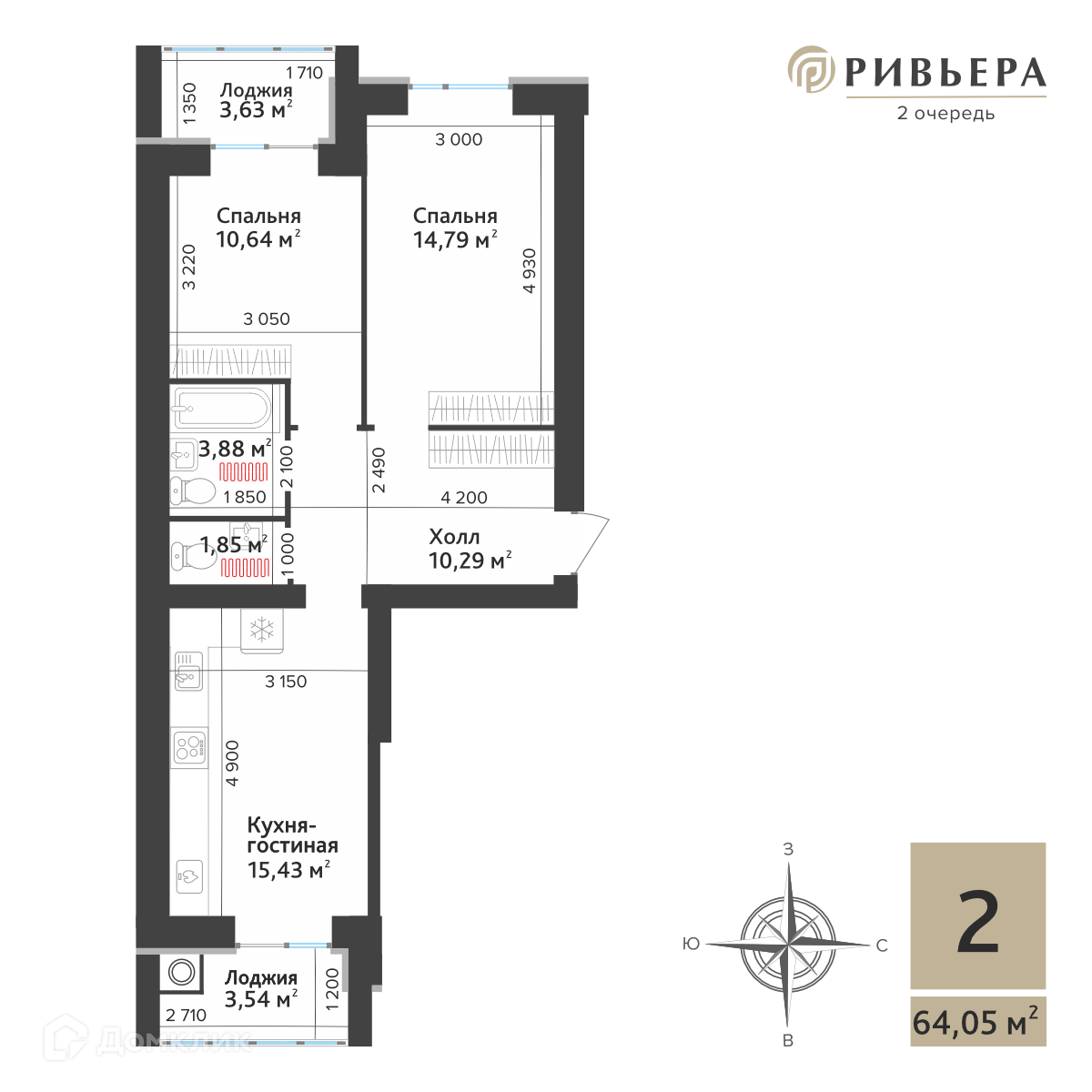 Продается 2-комнатная квартира в современном жилом комплексе "ЖК Ривьера 2" 🏢. Квартира расположена на 6-м этаже 10-этажного дома. Отличный вариант для комфортной жизни.