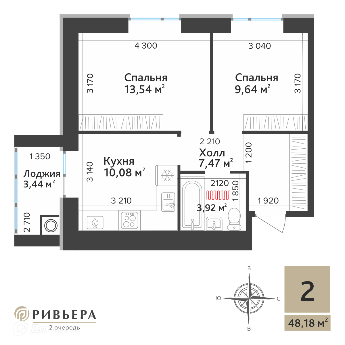 Доступна к покупке 2-комнатная квартира в востребованном жилом комплексе "ЖК Ривьера 2" 🏢. Квартира расположена на 8-м этаже 10-этажного дома. Прекрасный выбор для семьи.