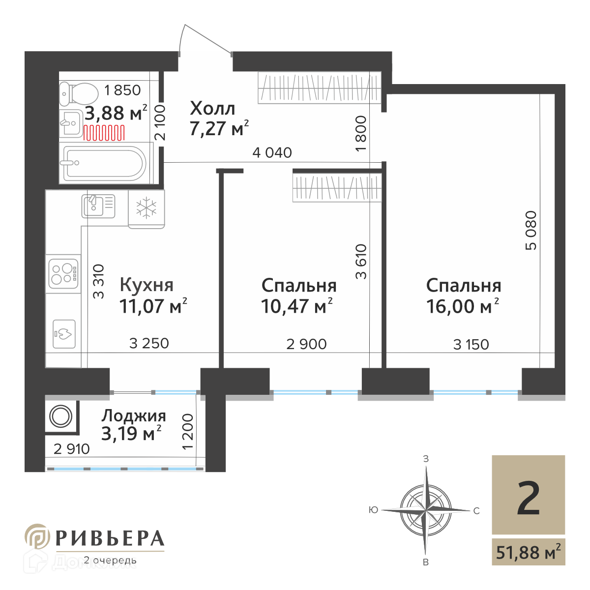 Доступна к покупке 2-комнатная квартира в востребованном жилом комплексе "ЖК Ривьера 2" 🏢. Квартира расположена на 10-м этаже 10-этажного дома. Отличный вариант для инвестиций.
