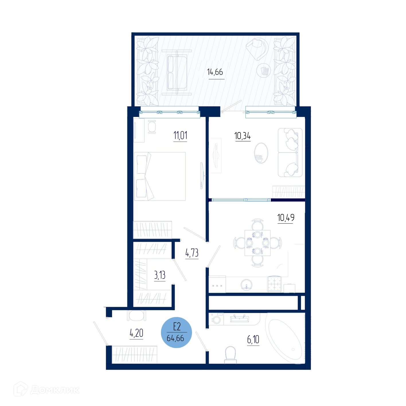 Планировка 1 комн. в ЖК Бульвар оптимистов