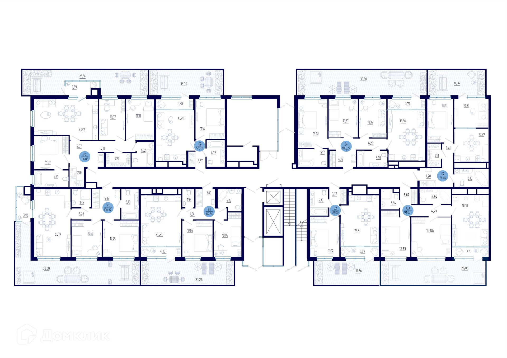 Площади квартир