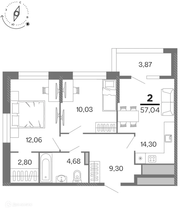 2 комн. квартира в Рязани в ипотеку от 57 402 руб/месяц