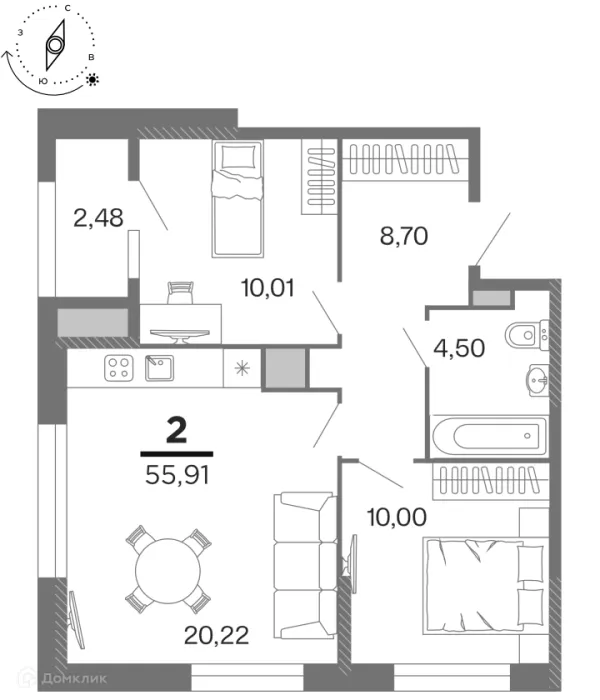 2 комн. квартира в Рязани в ипотеку от 52 491 руб/месяц