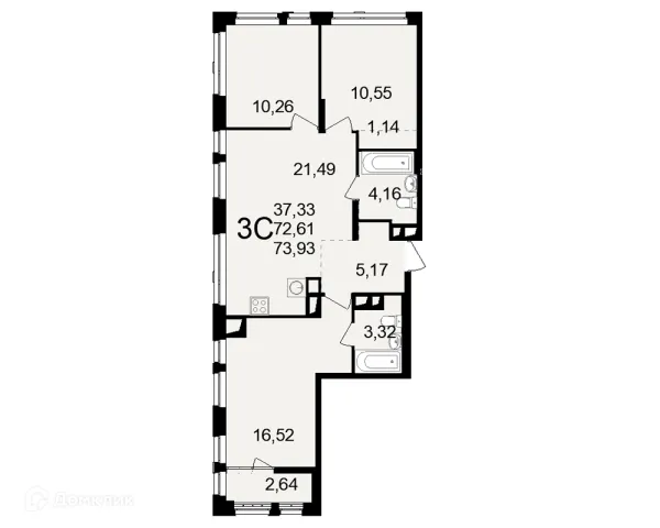 3 комн. квартира в Рязани в ипотеку от 64 416 руб/месяц