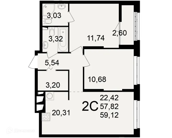 2 комн. квартира в Рязани в ипотеку от 56 987 руб/месяц