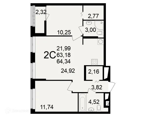2 комн. квартира в Рязани в ипотеку от 52 364 руб/месяц