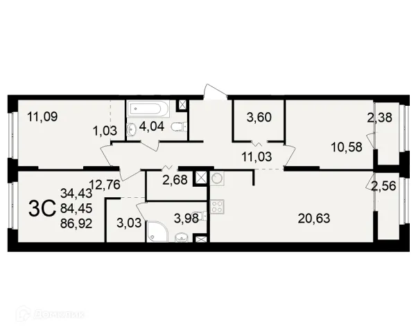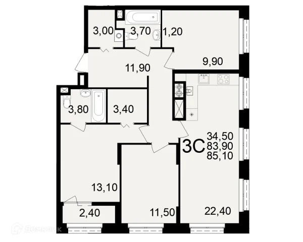 3 комн. квартира в Рязани в ипотеку от 68 634 руб/месяц