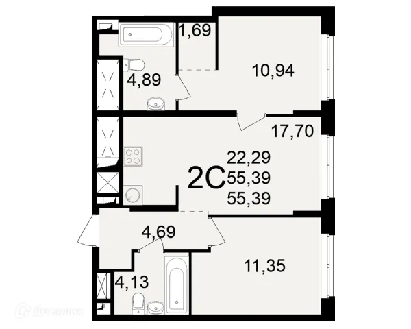 2 комн. квартира в Рязани в ипотеку от 51 389 руб/месяц