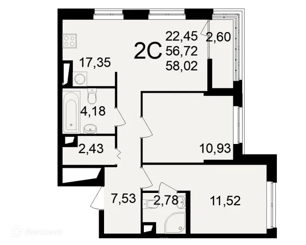 2 комн. квартира в Рязани в ипотеку от 53 108 руб/месяц