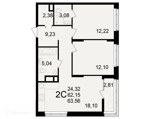 2 комн. квартира в Рязани в ипотеку от 43 154 руб/месяц