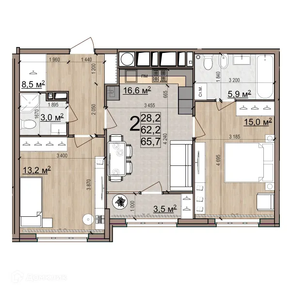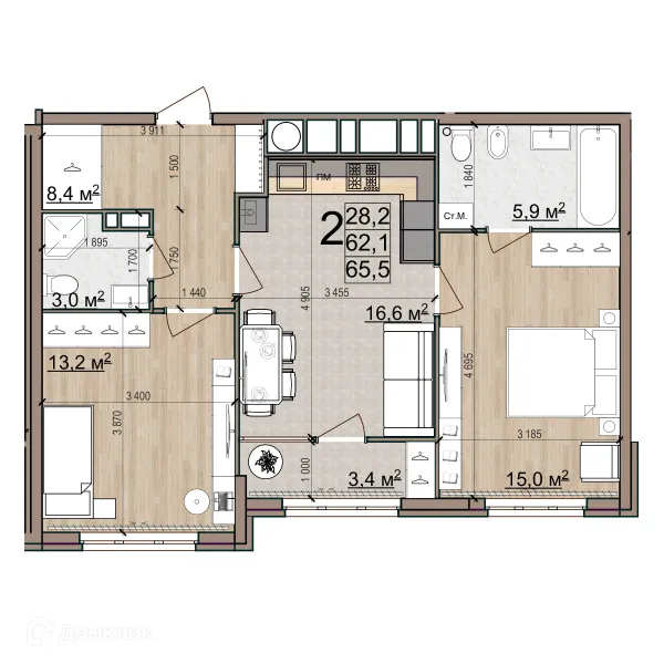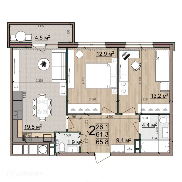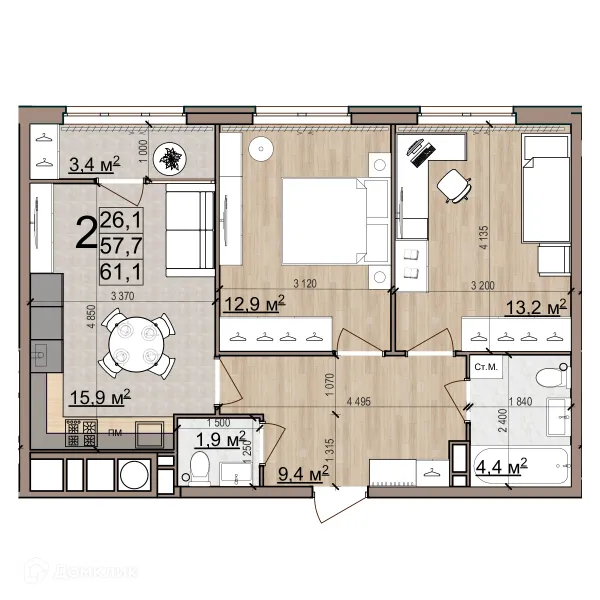2 комн. квартира в Рязани в ипотеку от 64 911 руб/месяц