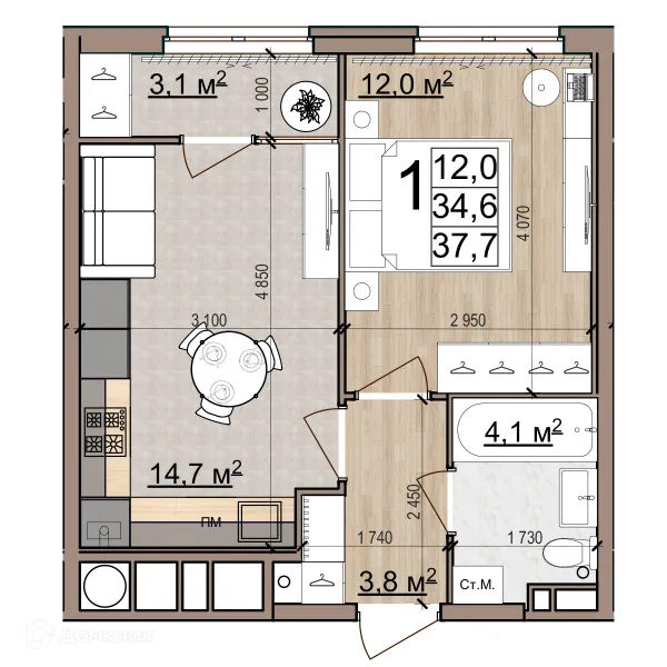 1 комн. квартира в Рязани в ипотеку от 38 958 руб/месяц