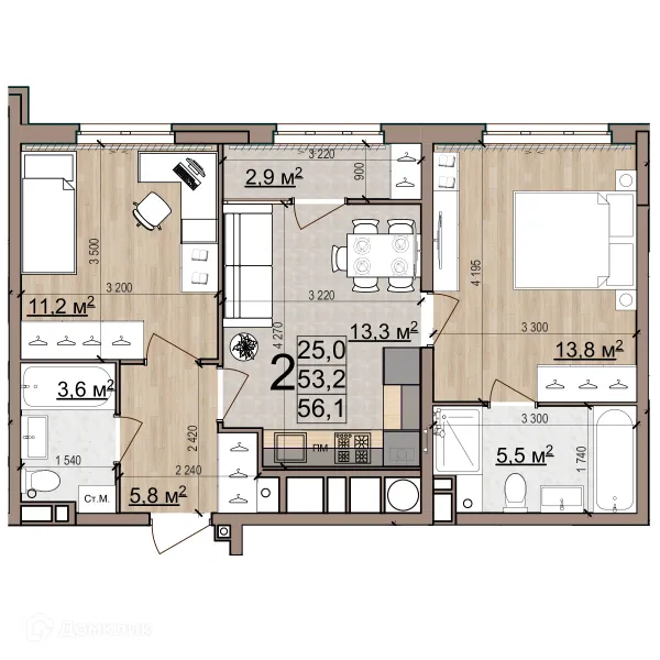 2 комн. квартира в Рязани в ипотеку от 47 267 руб/месяц