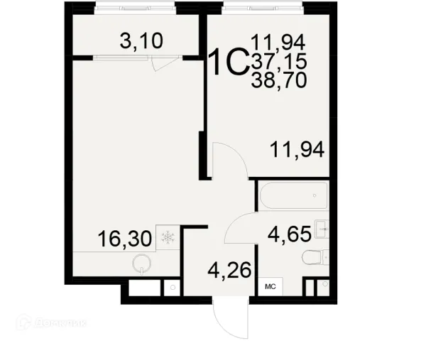 1 комн. квартира в Рязани в ипотеку от 24 091 руб/месяц