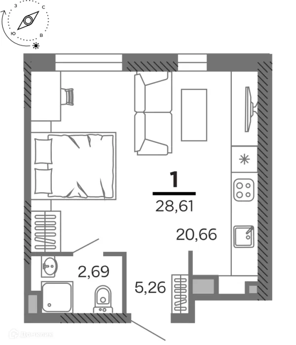 1 комн. квартира в Рязани в ипотеку от 26 970 руб/месяц