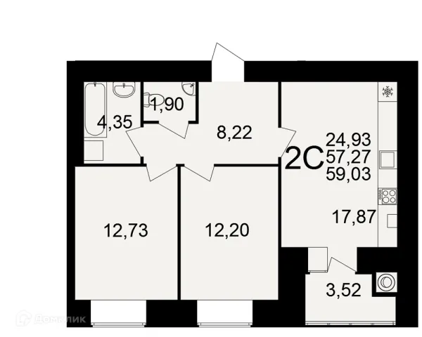 2 комн. квартира в Рязани в ипотеку от 55 091 руб/месяц