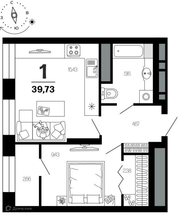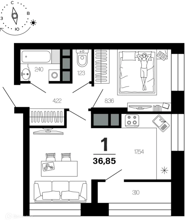 1 комн. квартира в ЖК Смарт Квартал ЦЕНТРАЛЬНЫЙ