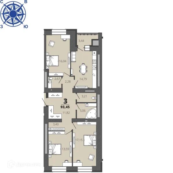 3 комн. квартира в Рязани в ипотеку от 64 244 руб/месяц