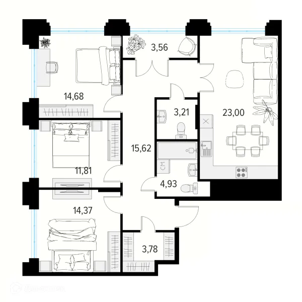 3 комн. квартира в Рязани в ипотеку от 153 499 руб/месяц
