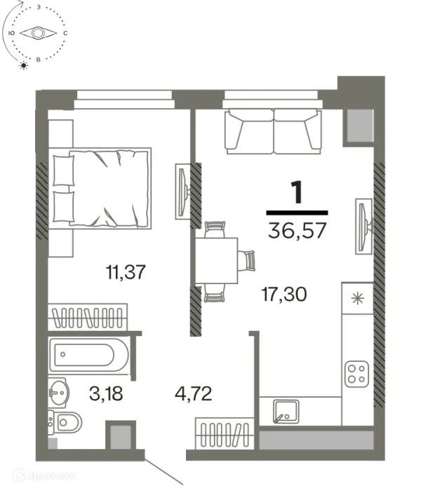 1 комн. квартира в Рязани в ипотеку от 34 804 руб/месяц
