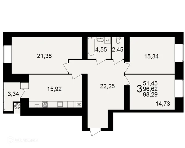 3 комн. квартира в Рязани в ипотеку от 97 038 руб/месяц