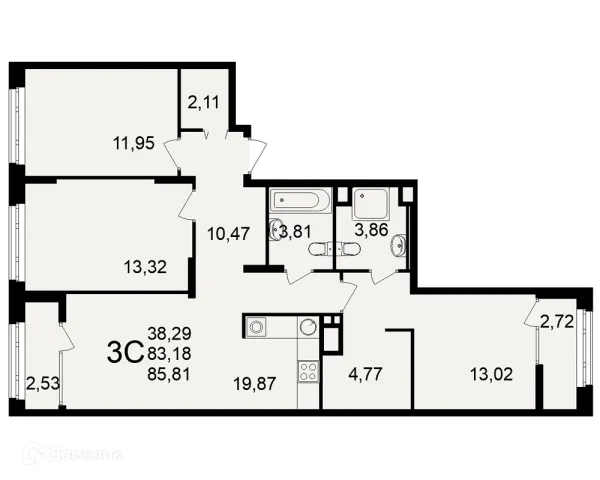 3 комн. квартира в Рязани в ипотеку от 87 078 руб/месяц