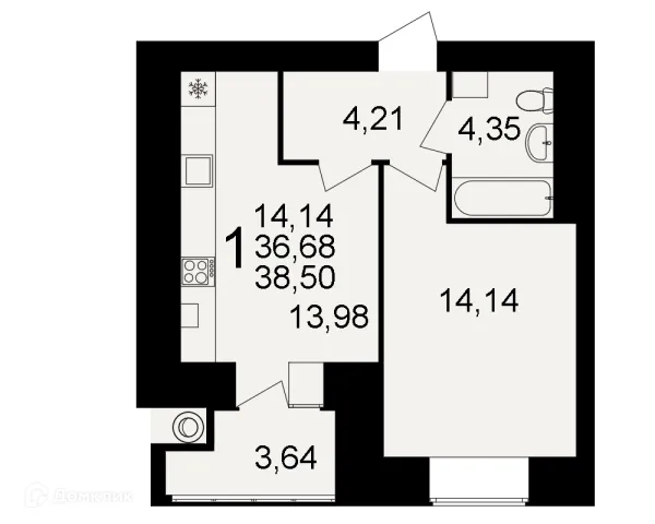 1 комн. квартира в Рязани в ипотеку от 37 886 руб/месяц