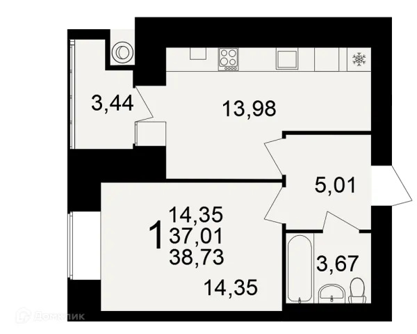 1 комн. квартира в Рязани в ипотеку от 35 511 руб/месяц