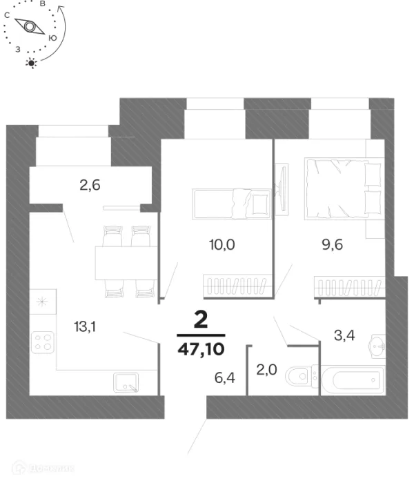 2 комн. квартира в Рязани в ипотеку от 47 601 руб/месяц
