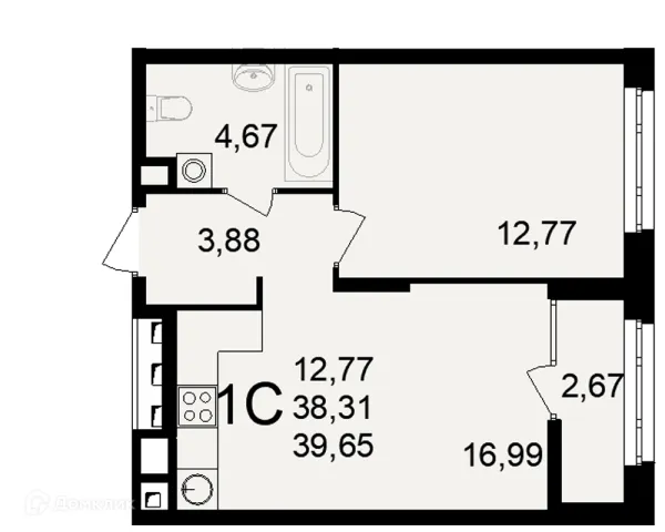 1 комн. квартира в Рязани в ипотеку от 16 977 руб/месяц
