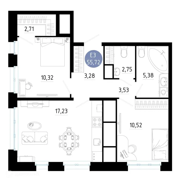 2 комн. квартира в Рязани в ипотеку от 54 718 руб/месяц