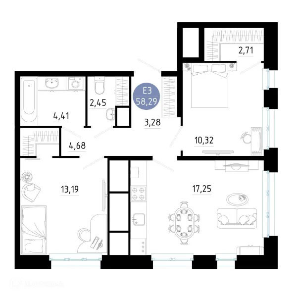2 комн. квартира в Рязани в ипотеку от 59 032 руб/месяц