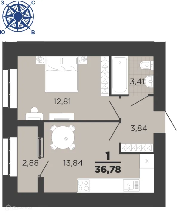 1 комн. квартира в Рязани в ипотеку от 37 212 руб/месяц